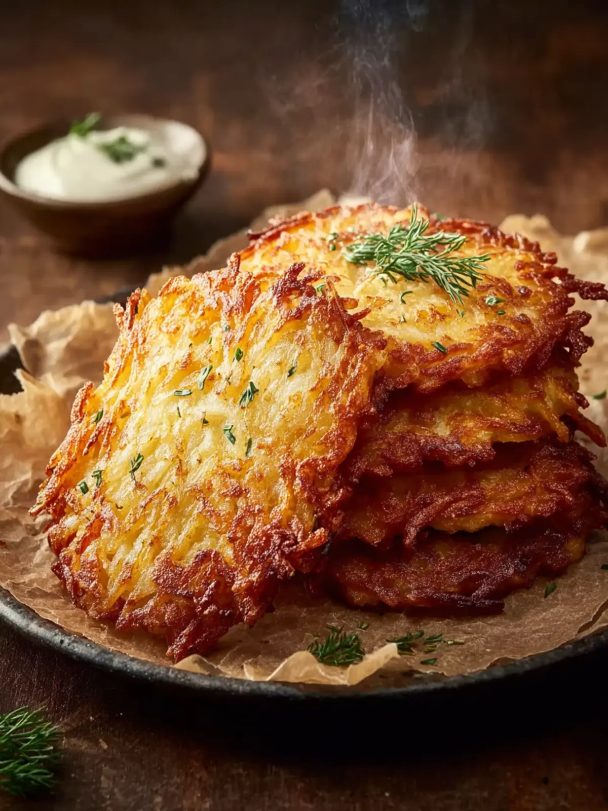 Versatile Serving Options: Traditionally served with applesauce or sour cream, these pancakes can also be dressed up with various toppings, from a sprinkle of fresh herbs to a dollop of smoked salmon.