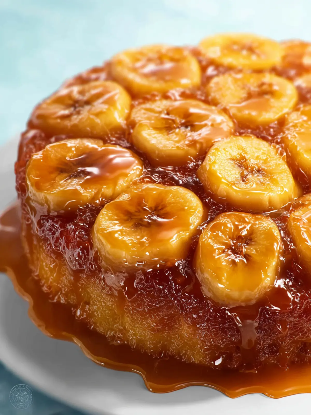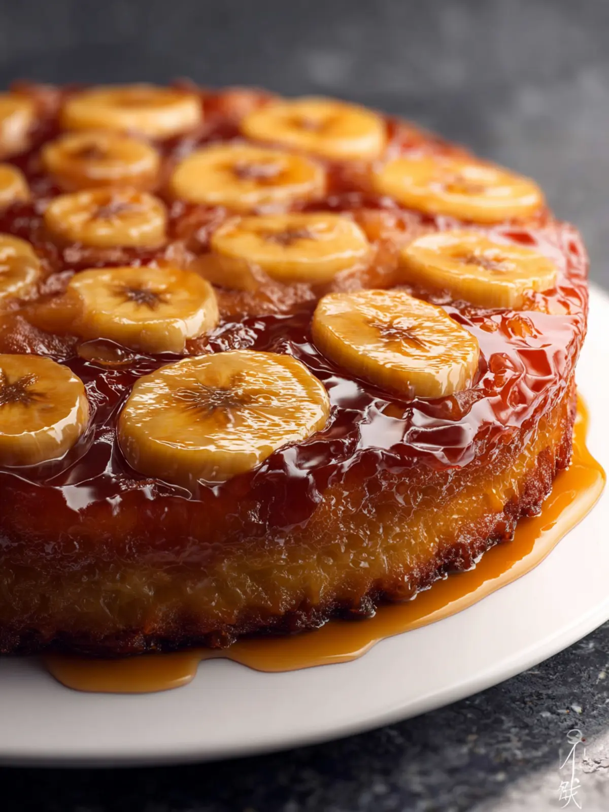 A delightful banana upside down cake with caramelized bananas and a light, fluffy texture.