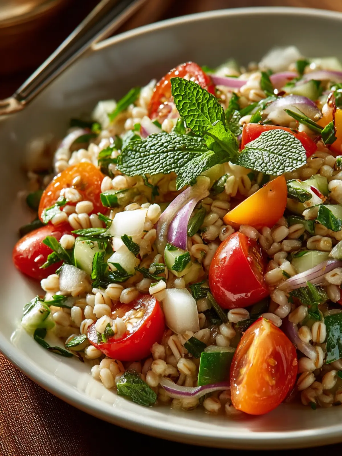 Enjoy your culinary creation—you’ve just made a delightful Barley and Herb Salad!