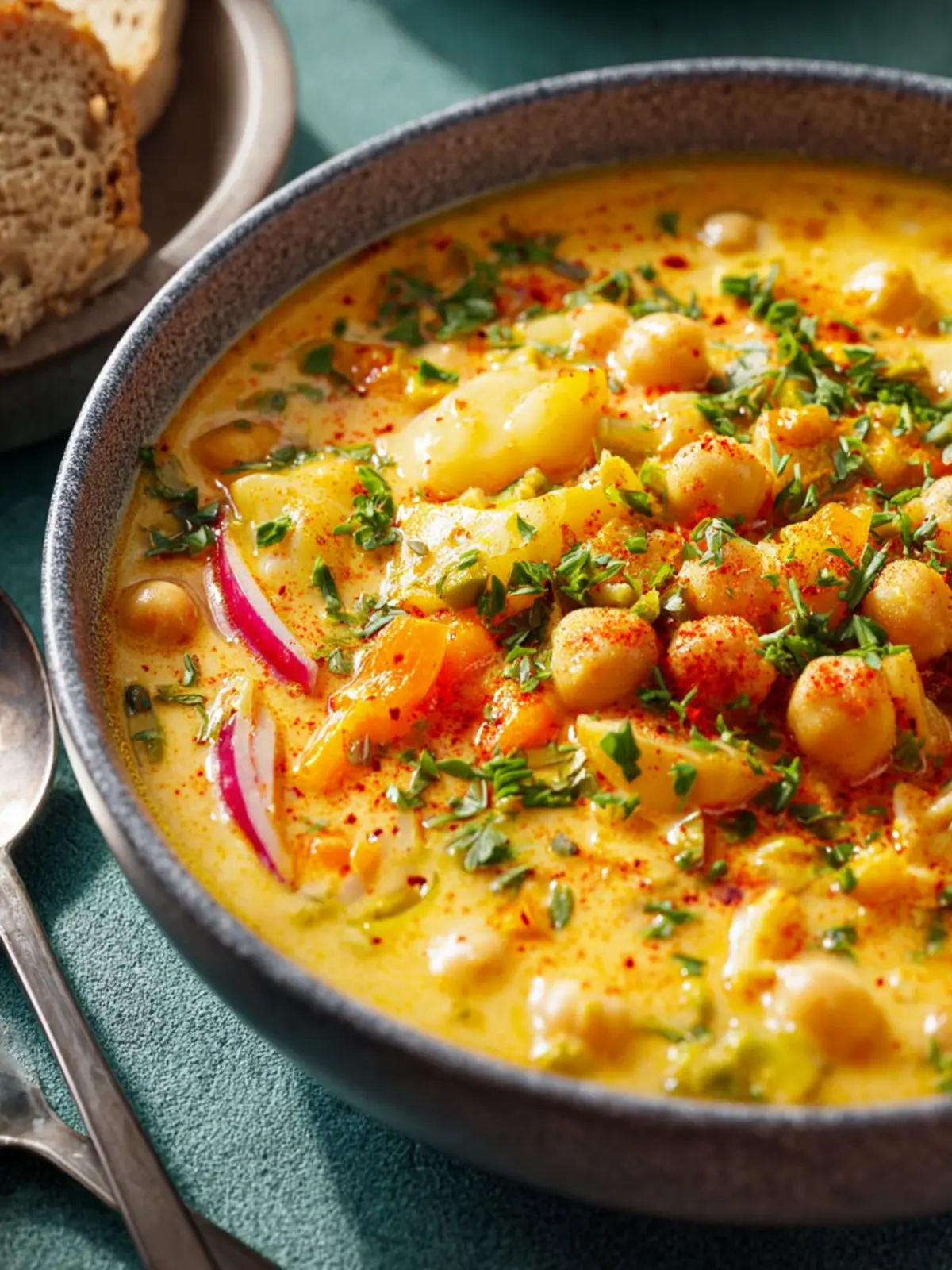 A hearty and creamy soup loaded with veggies and chickpeas, perfect for a comforting meal.