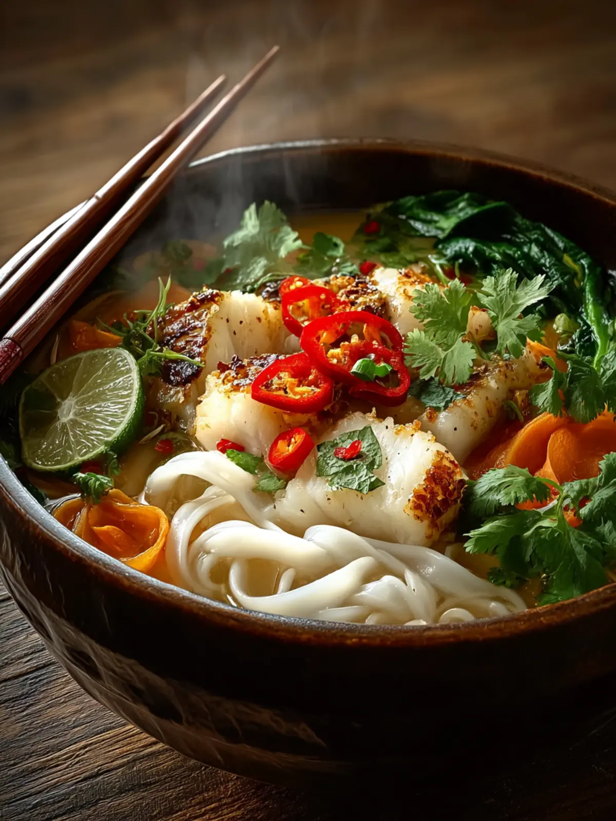 Don’t forget the fresh toppings! A handful of cilantro, a squeeze of lime, or slices of fresh chili can brighten the dish and add a punch of flavor that complements the rich coconut cod noodle bowl perfectly.