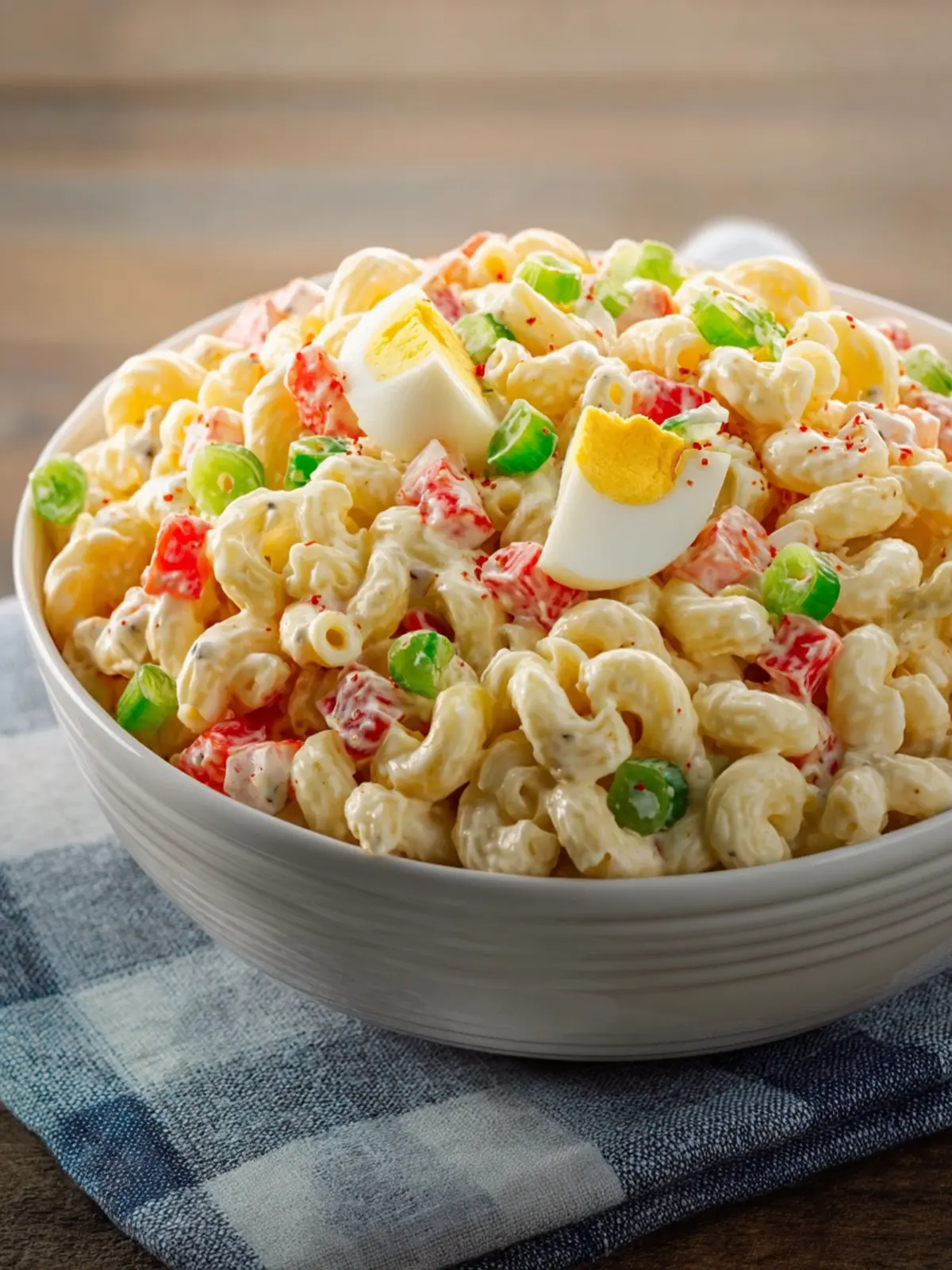 A delicious and creamy macaroni salad perfect for picnics and gatherings.