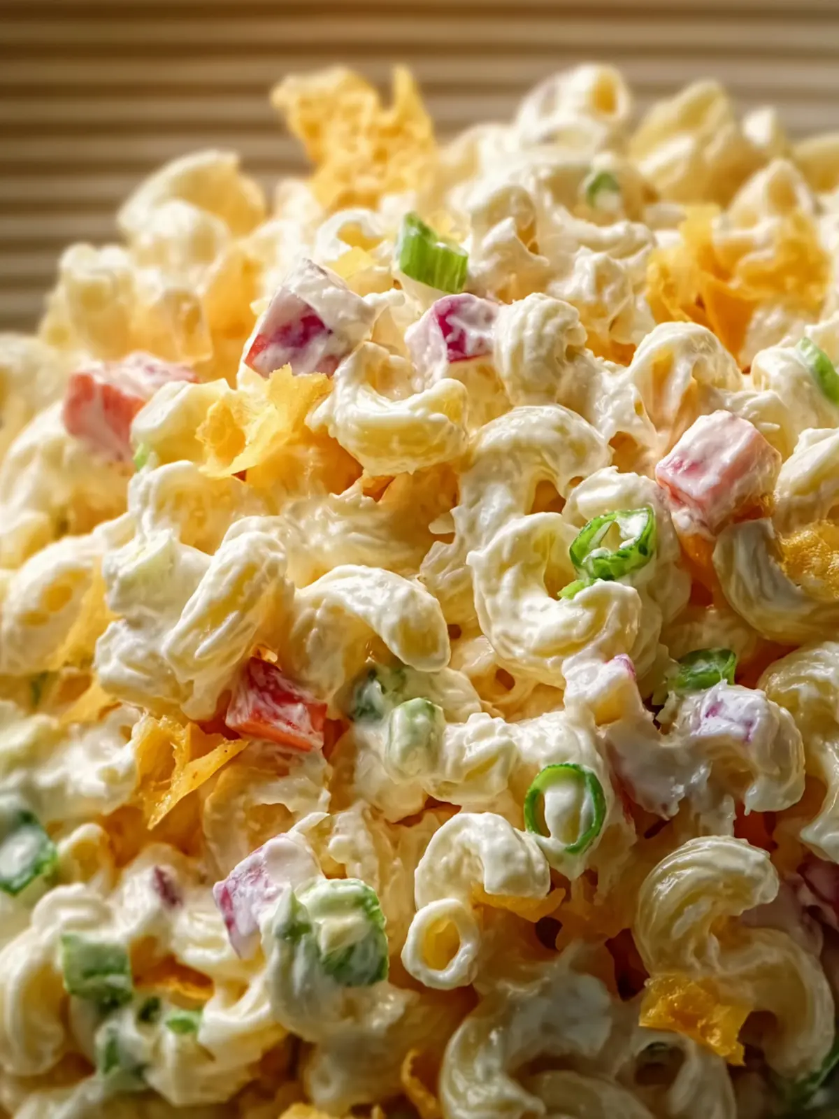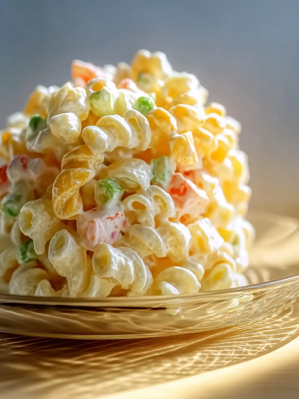 A creamy elbow macaroni salad loaded with vegetables, perfect for summer gatherings.