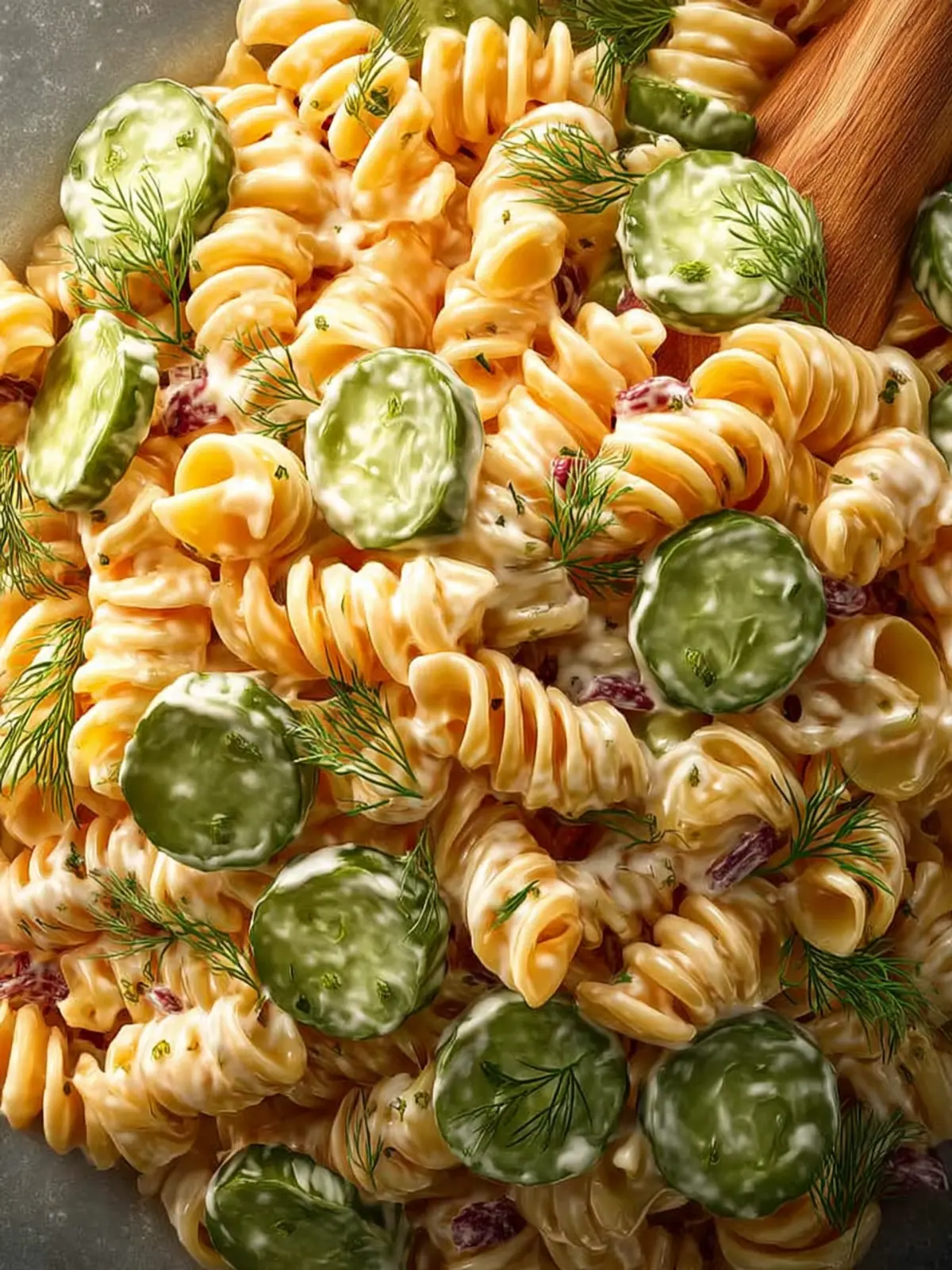 A refreshing and creamy dill pickle pasta salad perfect for picnics and gatherings.