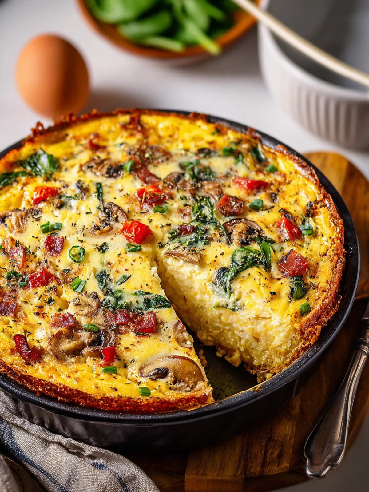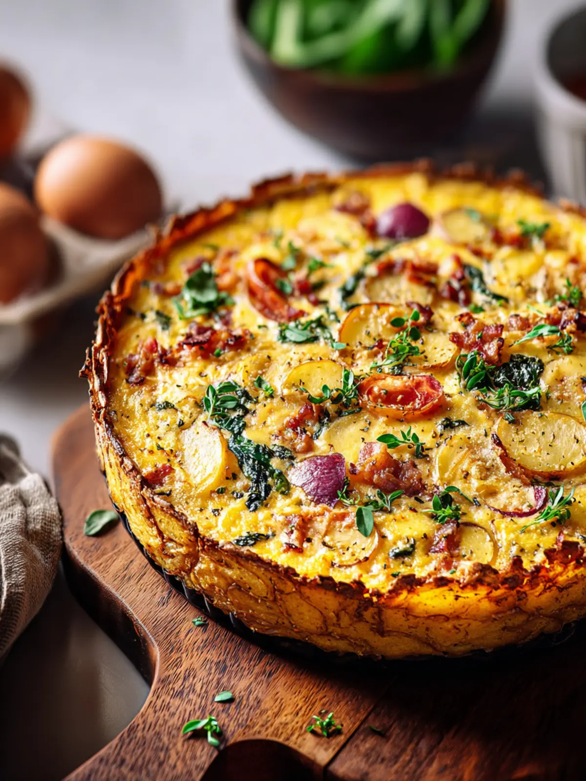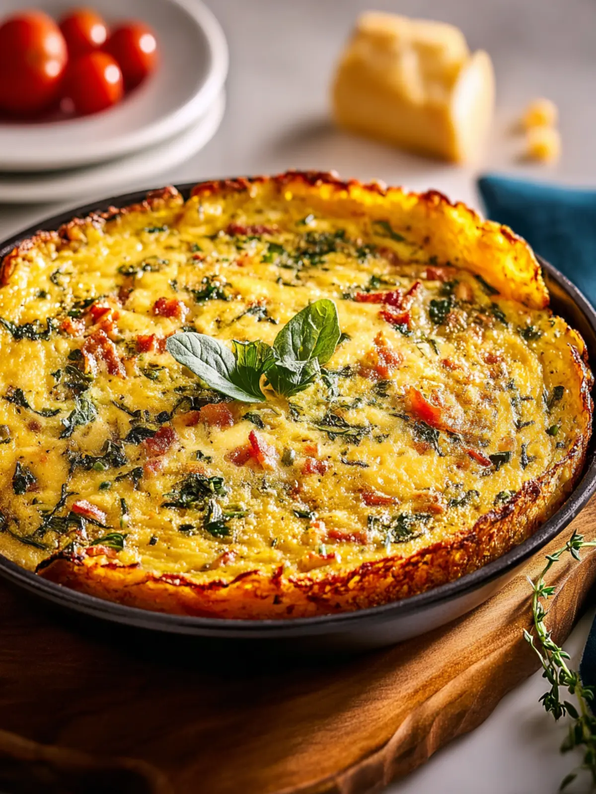 A delicious and hearty frittata made with grated Russet potatoes, eggs, and fresh vegetables.