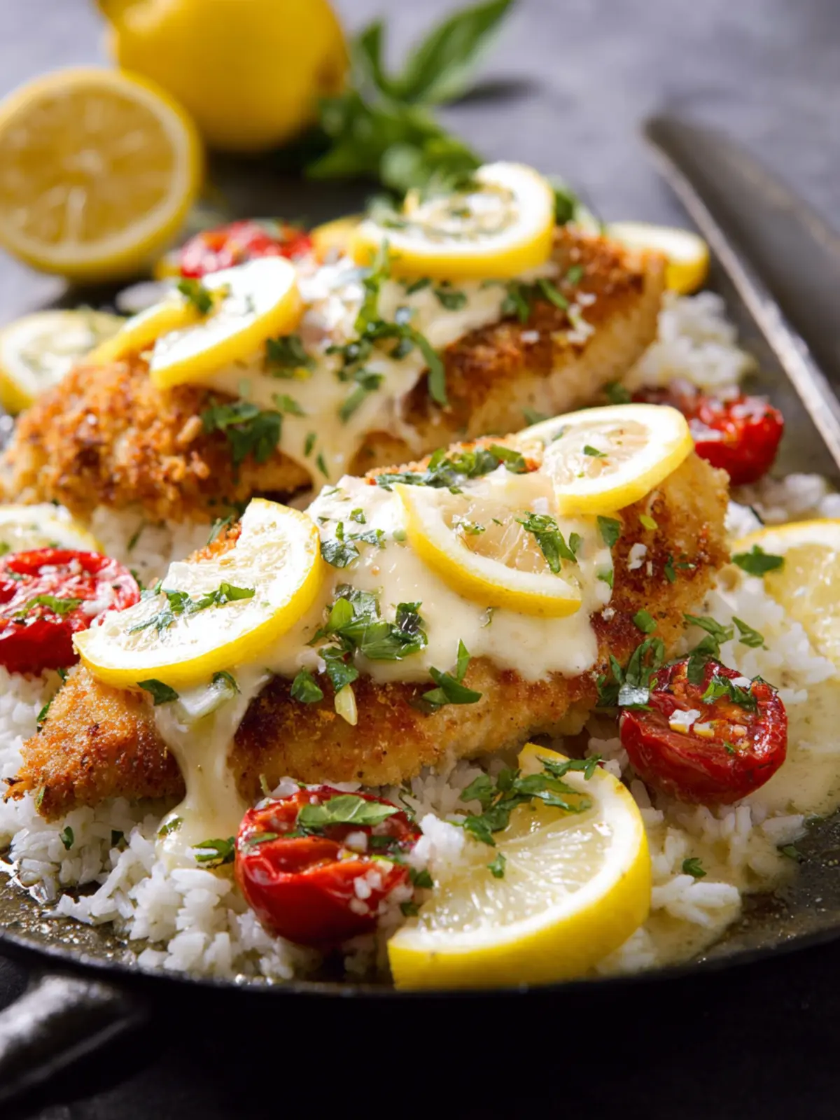 • Creamy Risotto: Creamy, lemon-infused risotto creates a luxurious base to soak up the chicken’s sauce, making each bite a treat.