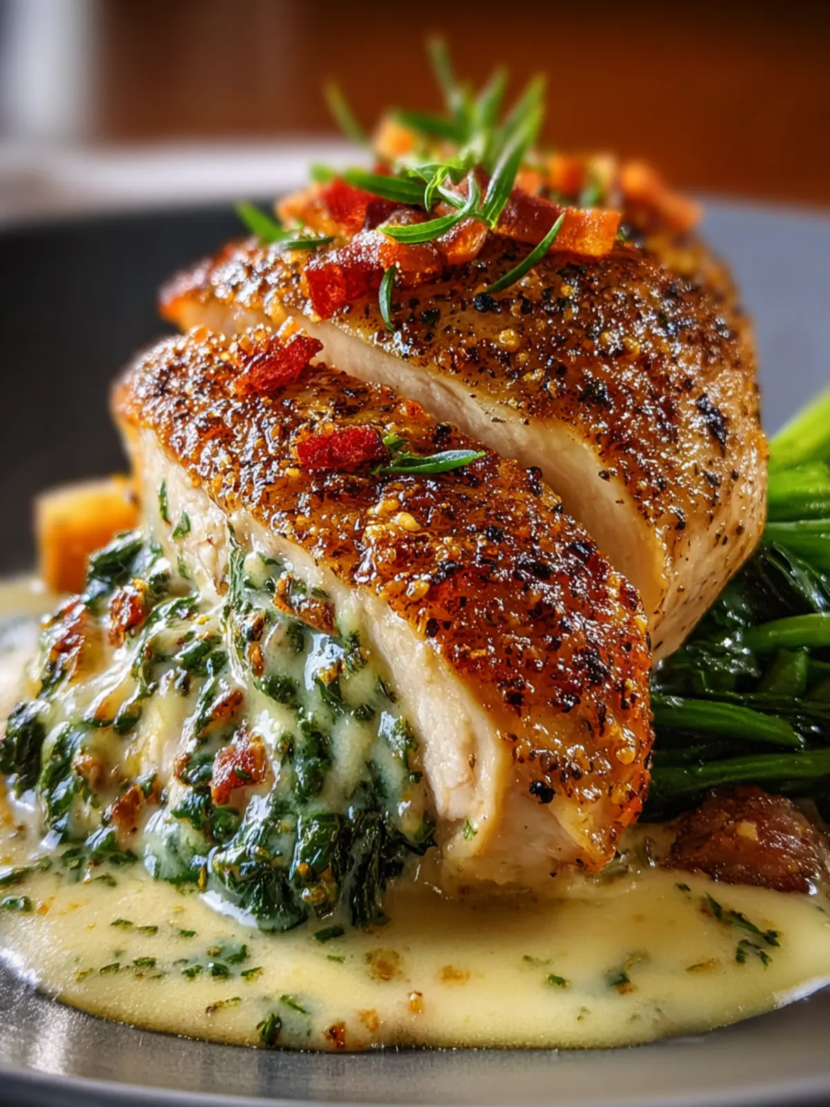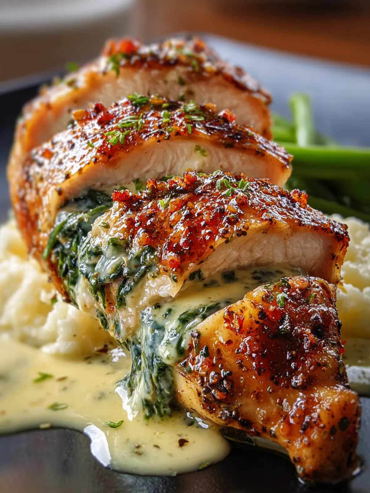 Impressive Presentation: When served, this stuffed chicken presents beautifully, often paired with seasonal vegetables or a rich sauce drizzled on top. It’s an ideal dish for impressing guests or elevating a family dinner.