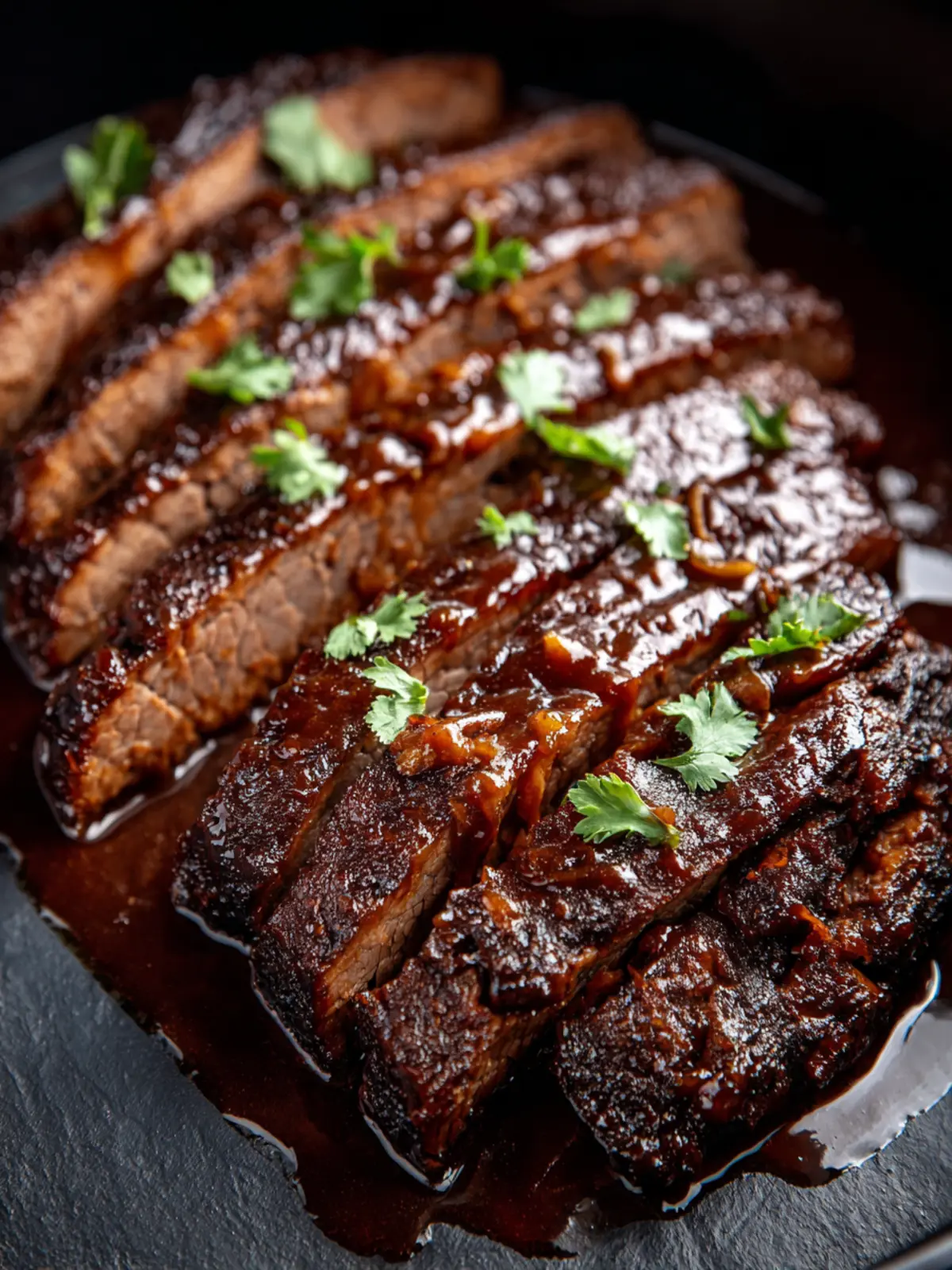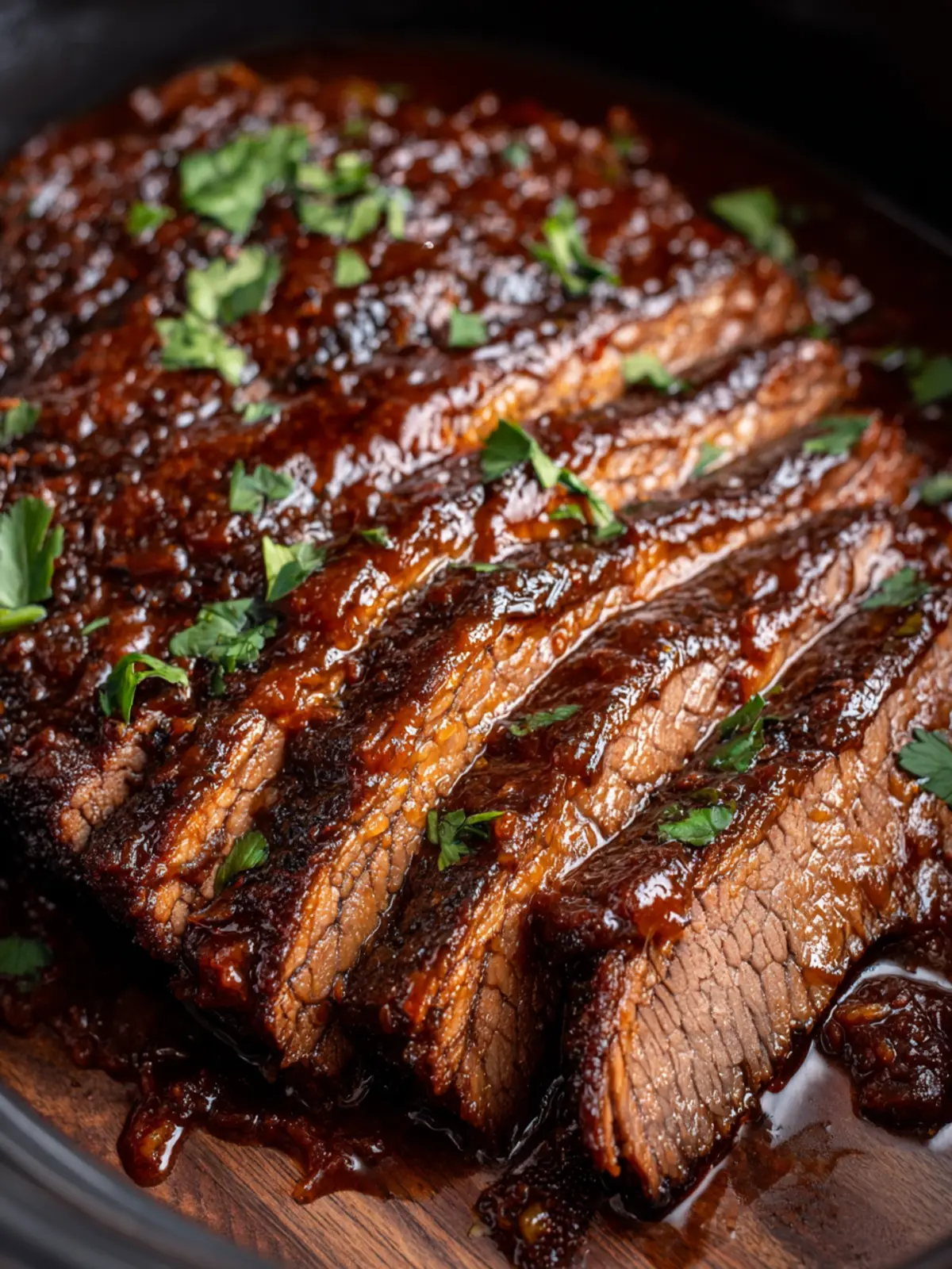 - Optional: Broil brisket on a foil-lined baking sheet with sauce for 3 to 6 minutes for caramelized edges. Serve with extra sauce.
