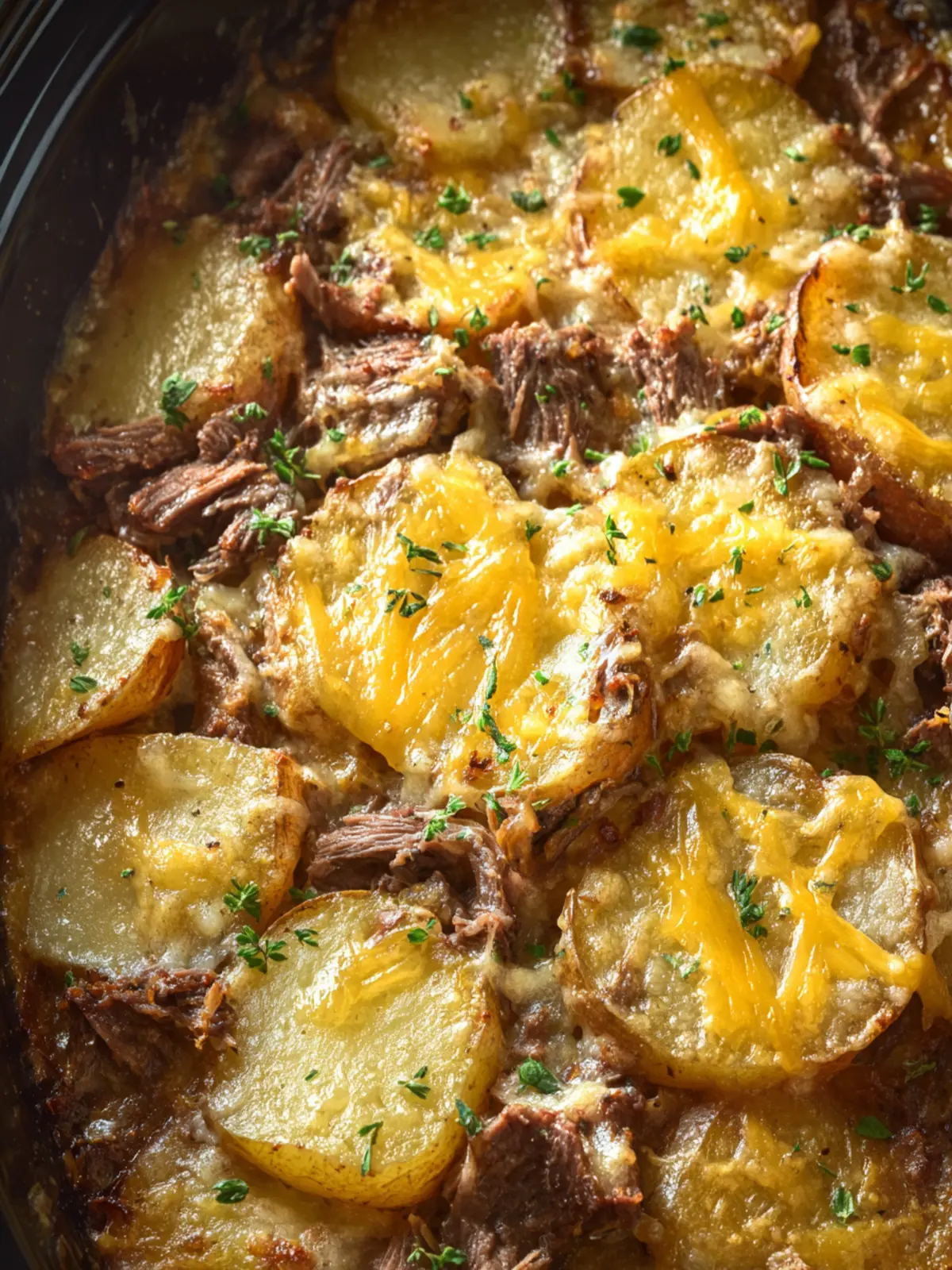 Hearty Ingredients: The combination of tender beef and layers of creamy potatoes creates a filling dish perfect for family gatherings or cozy nights. The slow cooker does the hard work for you, infusing the flavors beautifully while you go about your day.