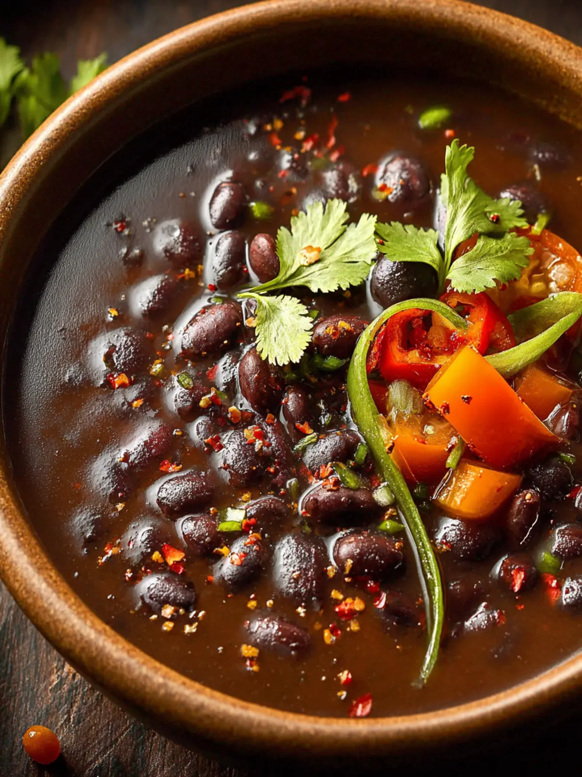 Enhance the flavor profile of your spicy black bean soup by adding fresh herbs like cilantro or toppings such as avocado and lime juice right before serving. These toppings not only add a splash of color but also brighten the dish with freshness.