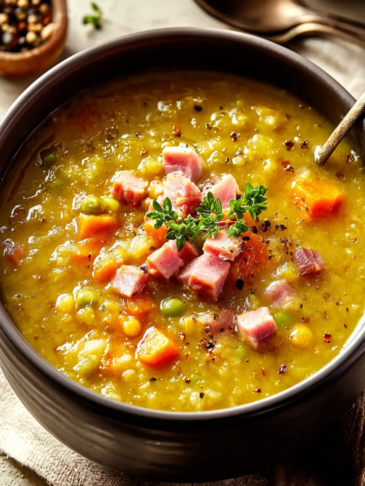 Additionally, this soup invites customization, offering endless possibilities to suit your taste. A sprinkle of fresh herbs or a dash of hot sauce can take it to new heights, allowing you to personalize your experience. Whether enjoyed on a quiet night in or shared with friends, split pea soup with ham is the ultimate comfort food that nourishes body and spirit alike. So let’s dive into the recipe and discover just how easy it is to bring this home-cooked classic to your table!