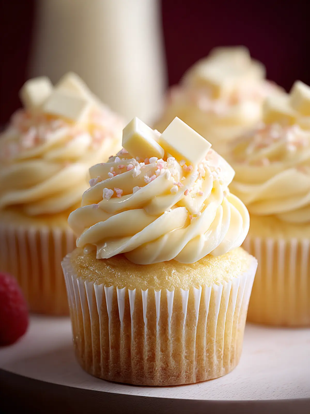 Fresh Berries: Topping your cupcakes with fresh berries like raspberries or strawberries not only adds a pop of color but also introduces a tangy flavor that pairs beautifully with the sweet white chocolate.