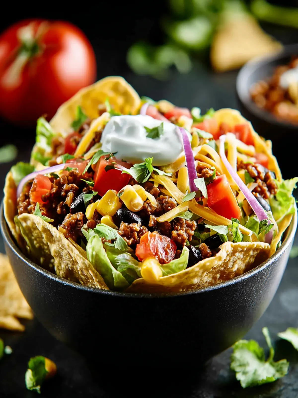 Finding a dish as delightful and flexible as this one is rare. The zesty taco salad is more than just a meal; it’s a celebration of flavors that effortlessly fits into any lifestyle.